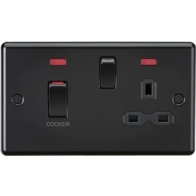 Knightsbridge 45A DP Switch and 13A Switched Socket with neons Matt Black
