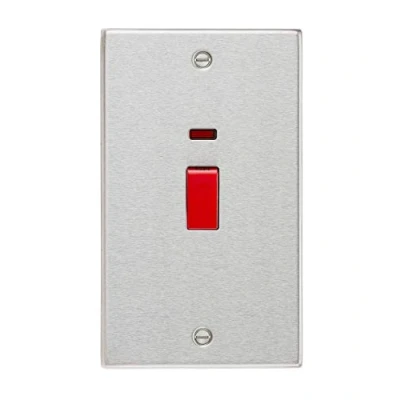 Cooker control units enable isolation of the unit so that maintenance and repairs to be carried out separately. The unit can be switched off, preventing the appliance from being turned on accidentally - for example whilst cleaning. Control two or more cooking appliances in the same room, providing rating is sufficient. Square edge metal design - 45A - Double pole - With neon indicator - Square edge design with built in gasket - Certified to EN 60669-1 - Minimum mounting box depth: 47mmTechnical Specification:Projection (mm): 10.5Min. Mounting Box Depth (mm): 47mmConstruction: Premium grade steelFinish: Brushed ChromeIP Rating: IP20Primary Voltage: 230V 50HzEarth Terminal: YesTerminal: ScrewDimensions: Height: 149mmWeight: 0.275KgWarranty: 15 Years