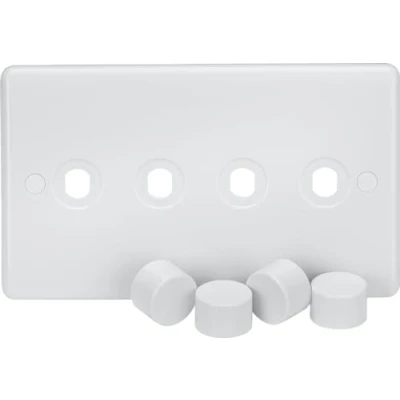 AmazonGently contoured 7mm plate with rounded edges and anti-microbial properties 4G dimmer plate with matching dimmer caps - unpopulated Suitable for mounting Knightsbridge dimmer modules or other after-market dimmer modules for a bespoke solution., Manufacturer: Knightsbridge