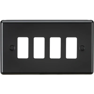 Designed and finished to coordinate with the Rounded Edge Brushed Chrome Switches and Sockets range.4G Rounded Edge Grid FaceplateUse in conjunction with 1 x GDF002F (sold separately)FOR USE WITH KNIGHTSBRIDGE GRID SYSTEM ONLYTechnical SpecificationHeight: 87.75Width: 146.5Projection: 7.5Construction: Premium grade steelFinish: Matt BlackIP Rating: IP20Technical Specification:IP Rating: IP20 Colour: Matt BlackDimensions: Height: 88mmWeight: 0.091KgWarranty: 25 Years