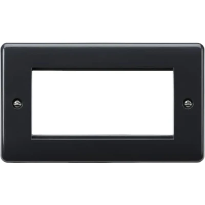 4G Modular Faceplate [Part M Compliant]The Curved Edge range has been expanded to include a range of wiring accessories that comply with current Building Regulations Part M. It is recommended that switches contrast with the front plate which in turn contrast with the wall. This range satisfies both recommendations. With a Light Reflectance Value (LRV) of approx. 8.9 (Part M recommends a contrast of 30% LRF between front plate and wall) Benefits Inherent Anti-microbial properties €“ 3rd party tested Certified to all relevant British Safety standards Features Single size suitable for 4 x 25x50mm, or 2 x 50x50mm euro-module Used to house euro-module inserts to create bespoke TV/SAT/HDMI/USB solutions Technical Specification:Height: 86Width: 146Projection: 7Construction: Thermoset resinFinish: AnthraciteIP Rating: IP20Positions: 4GPlate Size: DoubleDimensions: Height: 86mmWeight: 0.054KgWarranty: 25 Years