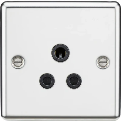 KnightsBridge 5A Unswitched Socket Rounded Edge Polished Chrome Finish with Black Insert