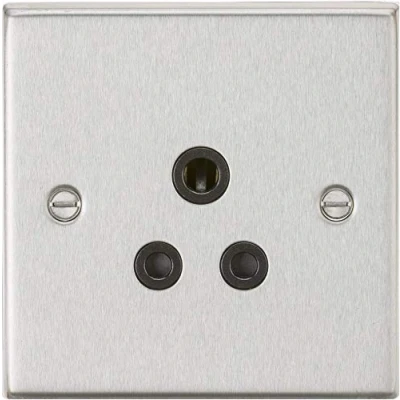 KnightsBridge 5A Unswitched Socket Square Edge Brushed Chrome Finish with Black Insert