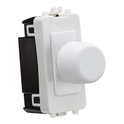 Light switch in the outlook of a dimmer. Designed to be used on grid faceplates where you require the outlook of a dimmer but the function of just a switch. - 6A rated - 2-way - Push on/off functionTechnical Specification:Projection (mm): 23Recessed Depth (mm): 23Min. Mounting Box Depth (mm): 35mmConstruction: ABSConstruction 2: & steelFinish: Matt WhiteIP Rating: IP20Primary Voltage: 230V 50HzDimensions: Height: 57mmWeight: 0.039KgWarranty: 3 Years