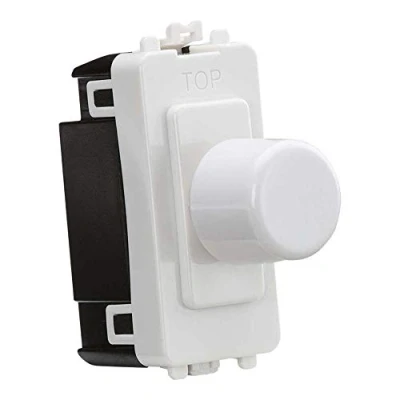 Light switch in the outlook of a dimmer. Designed to be used on grid faceplates where you require the outlook of a dimmer but the function of just a switch. - 6A rated - 2-way - Push on/off functionTechnical Specification:Projection (mm): 23Recessed Depth (mm): 23Min. Mounting Box Depth (mm): 35mmConstruction: ABSFinish: White (UREA)IP Rating: IP20Primary Voltage: 230V 50HzDimensions: Height: 57mmWeight: 0.039KgWarranty: 3 Years