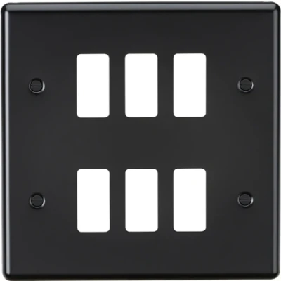 Designed and finished to coordinate with the Rounded Edge Brushed Chrome Switches and Sockets range.6G Rounded Edge Grid FaceplateUse in conjunction with 2 x GDF002F (sold separately)FOR USE WITH KNIGHTSBRIDGE GRID SYSTEM ONLYTechnical SpecificationHeight: 146.5Width: 146.5Projection: 7.5Construction: Premium grade steelFinish: Matt BlackIP Rating: IP20Technical Specification:IP Rating: IP20 Colour: Matt BlackDimensions: Height: 147mmWeight: 0.156KgWarranty: 25 Years