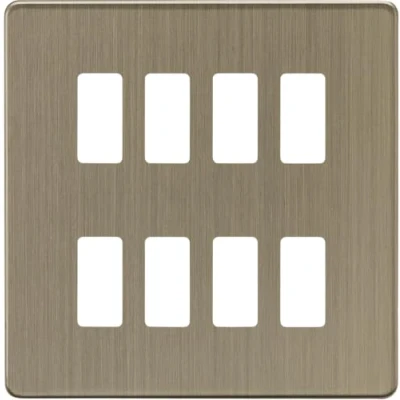 Knightsbridge 8G Grid Faceplate Antique Brass