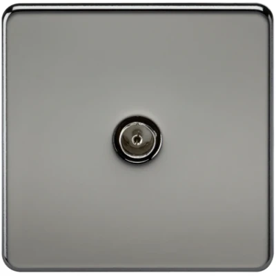 KnightsBridge Coaxial TV Outlet 1G Screwless Black Nickel Un Isolated Wall Plate