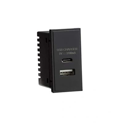 Amazon MarketplaceDual USB Charger (3.1A) Module 25 x 50mm - Black Dual USB Type A+C charger outlet suitable for use with euro-module faceplates Certified to BS 5733, BS EN 62368 Dual USB A + C charger 5V DC 3.1A (shared) These modular units are designed to be fitted into a modular mounting frame which is purchased sperately, Manufacturer: Knightsbridge