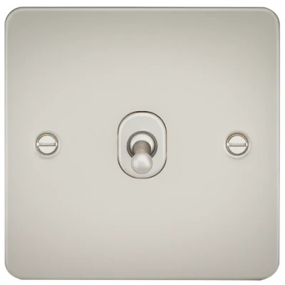 An intermediate switch is used when you have three switches controlling one light. A typical example of this is on a landing. There is a switch at the bottom of the stairs, one at top of the stairs and one at the end of the landing. On this circuit you would need the middle switch to be intermediate (i.e. the one at the top of the stairs) in order for all the switches to function properly. Flat Plate low profile metal design with matching metal toggle.- 10AX rated- Ultra low profile design with built in gasket- Certified to EN 60669-1- Minimum mounting box 16mmSpecification: Projection (mm): 2.5Min. Mounting Box Depth (mm): 16mmConstruction: Premium grade steelFinish: PearlClass: IIP Rating: IP20Primary Voltage: 230V 50HzEarth Terminal: Yes