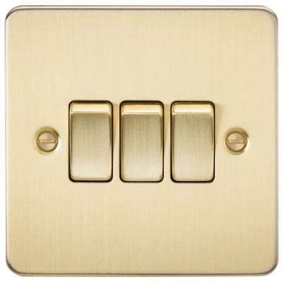 KnightsBridge Flat Plate 10AX 3G 2 way switch brushed brass