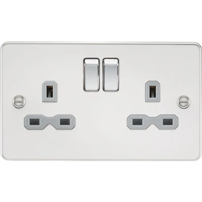 KnightsBridge Flat plate 13A 2G DP switched socket polished chrome with grey insert