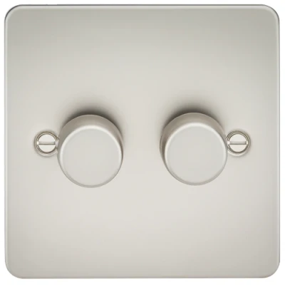 Perfect finishing touch to any modern home, Flat Plate low profile metal design with matching dimmer cap. - 10-200W Incandescent - 5-150W LED - 2-way - Push on/off - Trailing edge dimmer technology - Certified to EN 60669-2 - Minimum mounting box depth: 25mmNB: PLEASE CHECK WITH LAMP MANUFACTURER FOR COMPATIBILITYSpecification: Projection (mm): 2.5Min. Mounting Box Depth (mm): 25mmConstruction: Premium grade steelFinish: PearlIP Rating: IP20Primary Voltage: 230V 50HzEarth Terminal: Yes