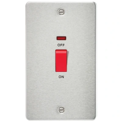 KnightsBridge Flat Plate 45A 2G DP switch with neon brushed chrome