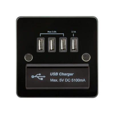KnightsBridge Flat Plate Quad USB charger outlet Gunmetal with black insert