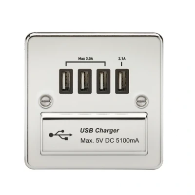 KnightsBridge Flat Plate Quad USB charger outlet Polished chrome with black insert