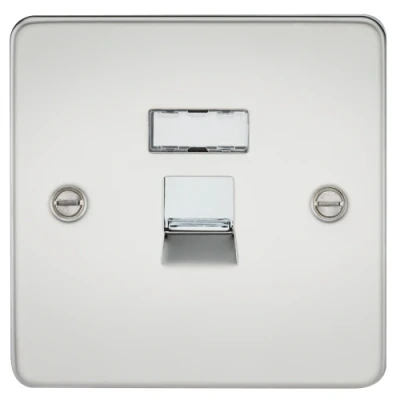 Ideal for creating wired networking points around the home. Flat Plate low profile design - Single shuttered UTP CAT5e RJ45 port - IDC terminals (tool included) - Write on designation label - Ultra low profile design with built in gasket - Certified to BS 5733 - Minimum mounting box depth: 35mmSpecification: Projection (mm): 2.5Min. Mounting Box Depth (mm): 35mmConstruction: Premium grade steelFinish: Polished ChromeIP Rating: IP20Earth Terminal: YesTerminal: IDC