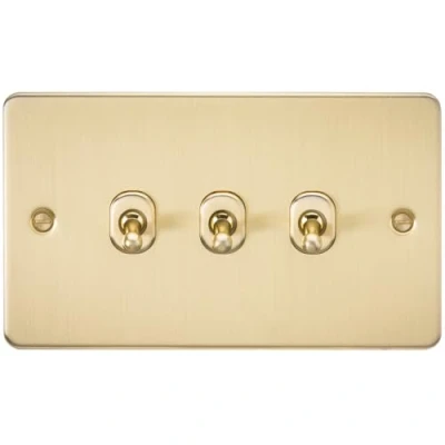Knightsbridge FP3TOGBB Brushed Brass FPAV3TOGBB Flat Plate 10A 3G 2 Way Toggle Switch