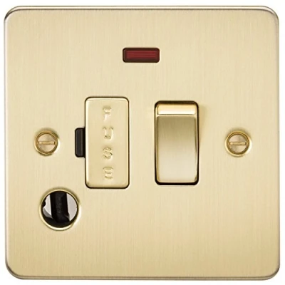 Knightsbridge FP6300FBB Brushed Brass FPAV6300FBB Flat Plate 13A Switched Fused Spur Unit with Neon and Flex Outlet