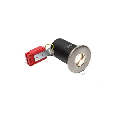 Knightsbridge 50W Shower Downlight The Knightsbridge die cast fixed 90 minute fire rated downlight is compatible with GU10 11W Energy Saving Halogen Lamps. These downlights are sure to bring style to your lighting solution. Features a double insulated fitting with a twist and lock front ring, ensuring the security of the attached bulb. This model holds an IP65 rating, meaning they are ideal for uses such as in bathrooms with showers, or patio use, as they are resistant to weather, water, and dirt. Electrical termination is via a 10A connector block within a secure enclosure which comes with a cord grip. This product comes with spring clip fixings for a recommended maximum ceiling thickness of 30mm and is dimmable. This product is suitable for direct mounting on normally flammable surfaces. Note: Bulb is not included in this purchase Technical Specification: Recommended product location: Indoor Finishes available: White, Brass, Chrome, Brushed Chrome, Control Gear Type: N/A Lamp Supplied: No Class: Class I Should be earthed IP: IP65 Photometric Testing: Yes Dimmable?: No Outer diameter 87mm Recessed depth 130mm Recommended ceiling void required 150mm Recommended maximum ceiling thickness of 30mm Cut-out 72mm. Main Materials: Chassis: Pressed Steel Bezel: Die cast Fixing Method & Certs: Method of fix: Twin spring-loaded brackets Lampholder cap and make: GU10 Electrical Connections: 10Amp L.N.E Nylon Connector, Screw Terminals F mark: Yes CE mark: Yes Manufactured in accordance to EN60598-1 General requirements, EN60598-2-1 Fixed general purpose luminaires, EN60598-2-2 Recessed luminaires, BS5250 (Energy efficiency, Useful heat loss and passage of condensation), BS EN ISO 140 (Parts 1& 2):1997. (Acoustic), Part P (Installation requirements), BS476 – Part 21 & Part 23 Fire rating Comes with a 1 Year Manufacturer's Warranty.