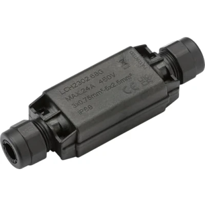 Supplier prefilled with gel and includes set of sleeves and a lever connector IP68 rated (@5bar) Max. 24A 250V/450V PTI 250, T85 Supplied with a set of cable sleeves and a lever connector For use with H07RNF 3G 0.75mm² - 2.5mm² cable