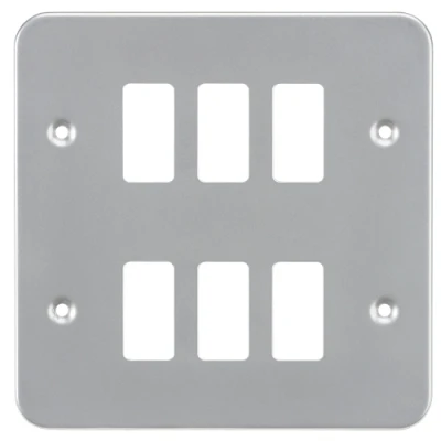 Designed and finished to coordinate with the Metal Clad Switches and Sockets range. 6G Metalclad Grid Faceplate - Use in conjunction with 2 x GDF002F (sold separately) FOR USE WITH METALCLAD GRID SYSTEM ONLYTechnical Specification:Projection (mm): 3.5Construction: Premium grade steelFinish: Powder-coated Silver/GreyIP Rating: IP20Dimensions: Height: 148mmWeight: 0.117KgWarranty: 15 Years