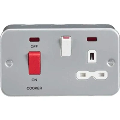 Knightsbridge MR8333N Metal Clad 2G 45A DP Cooker Switch and 13A Switched Socket with Neons, Grey