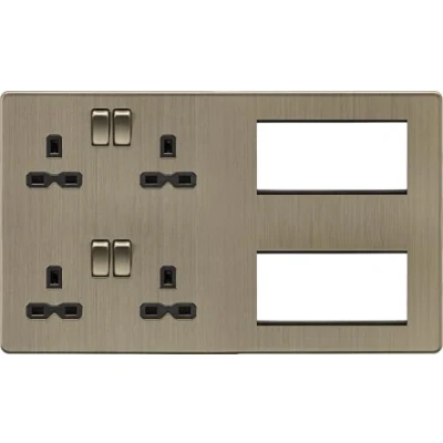 230V 13A Double Pole Switches 2 x 2G Double Sockets with Twin Earth Space for up to 8 x Euro module inserts (25 x 50mm)