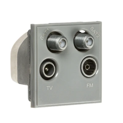 Fully screened Satellite, TV and FM/DAB aerial triplexed outlet with separate Sat 2 outlet. Ideal for Sky™ and Sky+™ applications with low loss, minimal ingress and negligible module cross talk with excellent matching and isolation. - Fully screened to EN 50083-2. - Easy cable connections and access. - Suitable for cables with 1mm conductor (PF100, H109F, QF100, etc.). - Min mounting depth 35mm. - Size: 50 x 50mmTechnical Specification:Recessed Depth (mm): 31Min. Mounting Box Depth (mm): 35mmConstruction: ABSFinish: GreyIP Rating: IP20TV Connection Type: MaleSAT Connection Type: F-TypeFM/DAB Connection Type: FemaleTerminal: Clamp & Screw TerminalDimensions: Height: 50mmWeight: 0.103KgWarranty: 1 Year