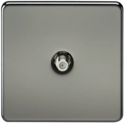 KnightsBridge SAT TV Outlet 1G Screwless Black Nickel Non Isolated Wall Plate