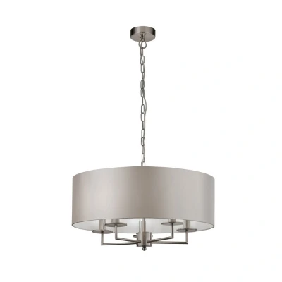 Knightsbridge Satin Silver Ceiling Pendant 5 Light with Faux Silk Shade