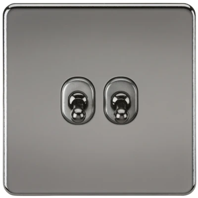 KnightsBridge Screwless 10AX 2G 2 Way Toggle Switch Black Nickel
