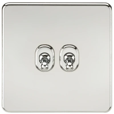 KnightsBridge Screwless 10AX 2G 2 Way Toggle Switch Polished Chrome