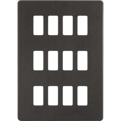 Designed and finished to coordinate with the Screwless Switches and Sockets range. 12G Screwless Grid Faceplate - Use in conjunction with 1 x GDS004F (sold separately) FOR USE WITH SCREWLESS GRID SYSTEM ONLYTechnical Specification:Projection (mm): 3.5Construction: Premium grade steelFinish: Smoked BronzeIP Rating: IP20Earth Terminal: NoDimensions: Height: 208mmWeight: 0.202KgWarranty: 15 Years