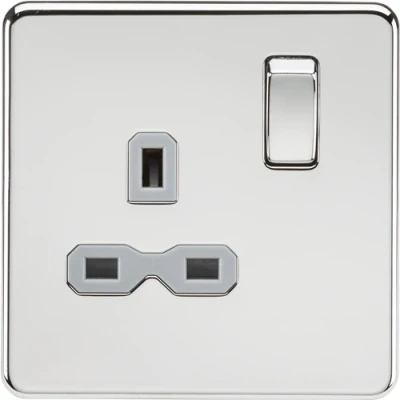 KnightsBridge Screwless 13A 1G DP switched socket polished chrome with grey insert