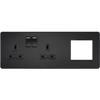 KnightsBridge Screwless 13A 2G DP Socket + Modular Combination Plate Matt Black