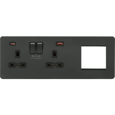 KnightsBridge Screwless 13A 2G DP Socket with USB Fastcharge + Modular Combination Plate, Anthracite
