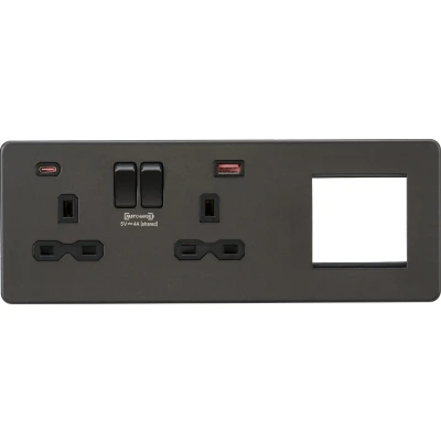 KnightsBridge Screwless 13A 2G DP Socket with USB Fastcharge + Modular Combination Plate, Smoked Bronze