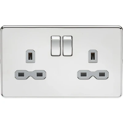 Knightsbridge Screwless 13A 2G Dp Switched Socket Polished Chrome with Grey Insert SFR9000PCG