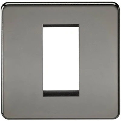 Suitable for use with euro module inserts. Ideal for creating bespoke TV/DATA/HDMI/USB/TEL installations. Flawless Screwless design - Accepts a single 25 x 50mm euro module - Screwless low profile design with built in gasket - Minimum mounting box depth: dependent on euro module usedSpecification: Projection (mm): 4.3Construction: Premium grade steelFinish: Black NickelClass: IIP Rating: IP20Earth Terminal: Yes