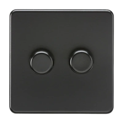 KnightsBridge Screwless 2G 2 way 10 200W (5 150W LED) trailing edge dimmer Matt Black