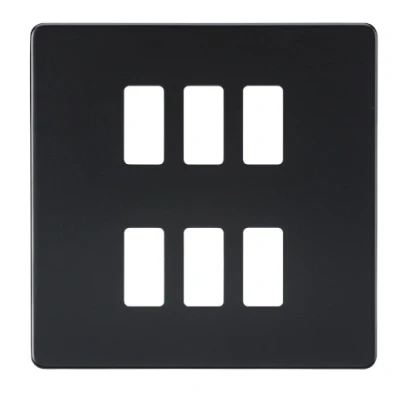 Designed and finished to coordinate with the Screwless Switches and Sockets range. 6G Screwless Grid Faceplate - Use in conjunction with 1 x GDS003F (sold seperately) FOR USE WITH SCREWLESS GRID SYSTEM ONLYTechnical Specification:Projection (mm): 3.5Construction: Premium grade steelFinish: Matt BlackIP Rating: IP20Earth Terminal: NoDimensions: Height: 148mmWeight: 0.146KgWarranty: 15 Years