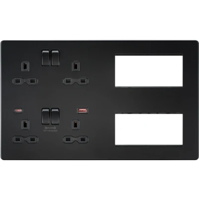 KnightsBridge Screwless Combination Plate with Dual USB FASTCHARGE A+C Matt Black