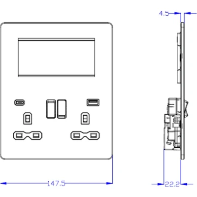 - Equipped with 1 x 2G Double Socket featuring Twin Earth connectivity.
