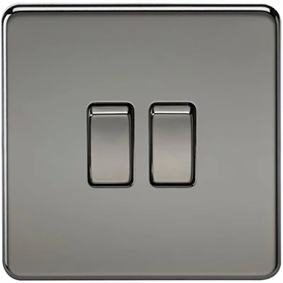 Knightsbridge SF3000BN Screwless 10 A 2 Gang Way Switch, Black Nickel