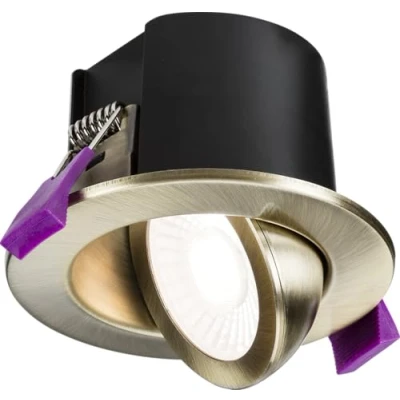New to Knightsbridge, the evolution of SpektroLED - one of the many innovations in our fire-rated downlight portfolio designed with budget in mind and with a passion for choice. SpektroLED Evo IP65 Tilt feature 2 selectable wattages and 4 selectable CCTs, available in 6 finishes (non-changable bezels). The IP65 tilt features a smooth 90 degree tilt, ideal choice for cost and energy efficient lighting installation that demand versatility. The new range of finishes lend themselves perfectly to any type of interior design and the IP65** rating means SpektroLED is suitable for dry and wet locations too.SpektroLED is truly one of the most versatile products on the market, designed with the contractor and end user in mind. The cleverly engineered male and female power connectors mean the cables can be terminated and hidden away until the decoration is finished with the downlight simply plugged in and installed after. The same connector system means the luminaire can be removed for maintenance by simply unplugging.230V direct to fixture with loop in-loop out first and second fix connectorsSelectable 5W and 7W outputs (to regulate maximum light output) for varying illumination requirementsSelectable 2700K, 3000K, 4000K, 6000K CCTsComplies with the latest energy efficiency standardsFire-rated - 30/60/90min solid timber, 30min web joist and 30min i-joist (staircraft)IC rated (insulation contact)Acoustic rated ISO 10140-2:20105-year warrantyDimmable***Extremely low-profile designIP65 from the front making it ideal for bathrooms as well as living spaces (also available in fixed)Smooth 90 degree tilt to achieve the desired light directionFinishes available in white, matt black, brushed chrome, polished chrome, brass and antique brass ** IP65 from below, IP20 from above *** For use with Trailing-edge dimmers - please check compatibility before installation.Technical SpecificationRecessed Depth: 56Minimum Void: 56Cut-out Diameter: 70Tilt: 90Construction: Pressed steelFinish: Antique BrassClass: IIIP Rating: IP65 (IP20 from above)Primary Voltage: 230V 50HzDiffuser: PrismaticLamp Technology: SMD LEDDimmable: Yes*L70B10: 50000Energy Rating (Class) post 2021 SLR: CBeam Angle: 60CCT: 2700/3000/4000/6000Light Colour: CCTLumens: 565/580/605/590/745/865/825/778Lumens (Light Source only): 1000Wattage: 5/7Efficacy: 142CRI: >80Technical Specification:Light Colour: CCT Colour: Antique BrassWeight: 0.29KgWarranty: 5 Years