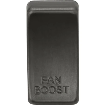 Switch cover marked "FAN BOOST" - Smoked BronzePre-printed replaceable/interchangeable rocker covers. Simply remove existing rocker and replace with designation required i.e. Washing Machine, Dishwasher etc.Technical Specification:Height: 33Width: 16Projection: 6.8Construction: ABSFinish: Smoked BronzeIP Rating: IP20Grid Product: YesDimensions: Height: 33mmWeight: 0.004KgWarranty: 25 Years