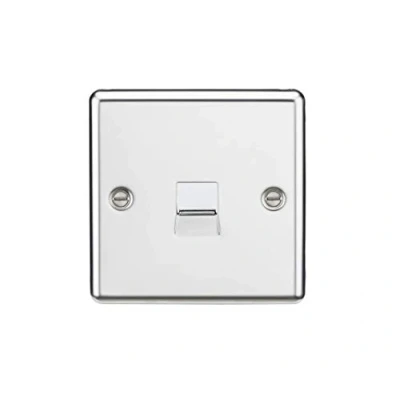 The master socket contain a surge arrestor and an R/C circuit filter these are used by your service provider to get a fixed value resistance when they run line checks. Standard BT type socket with screw type terminals. Rounded edge metal design - Master BT type socket - Screw terminals - Rounded edge design with built in gasket - Certified to BS 5733 - Minimum mounting box depth: 25mmTechnical Specification:Projection (mm): 7.5Min. Mounting Box Depth (mm): 25mmConstruction: Premium grade steelFinish: Polished ChromeIP Rating: IP20Terminal: ScrewDimensions: Height: 86mmWeight: 0.093KgWarranty: 15 Years