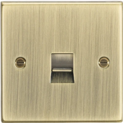 The master socket contain a surge arrestor and an R/C circuit filter these are used by your service provider to get a fixed value resistance when they run line checks. Standard BT type socket with screw type terminals. Square edge metal design - Master BT type socket - Screw terminals - Square edge design with built in gasket - Certified to BS 5733 - Minimum mounting box depth: 25mmTechnical Specification:Projection (mm): 10.5Min. Mounting Box Depth (mm): 25mmConstruction: Premium grade steelFinish: Antique BrassIP Rating: IP20Earth Terminal: YesTerminal: ScrewDimensions: Height: 89mmWeight: 0.157KgWarranty: 15 Years
