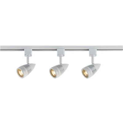 TRKSP4 1 Metre Tracklight Kit - White230V GU10 Track Spotlight Kit in White Supplied with; 1 x 1 metre circuit track, 1 x live and dead end accessories, 3 x TRKSP4 Tracklights Adjustable GU10 Tracklights 350° rotation and 80° tilt *Lamp not included. 50W max.Technical Specification:Diameter: 58Length: 1000Width: 57Projection: 172Base Width: 1000Base Depth: 35Overall Height: 187Construction: AluminiumFinish: WhiteClass: IIP Rating: IP20Primary Voltage: 230V 50HzMounting Method: SurfaceSuspension Kit: NoLamp Technology: Halogen / LED CompatibleLamp Base: GU10Lamp Included: NoDimmable: Lamp dependentMax. Wattage: 3x50Dimensions: Length: 1000mmWeight: 1.49KgWarranty: 2 Years